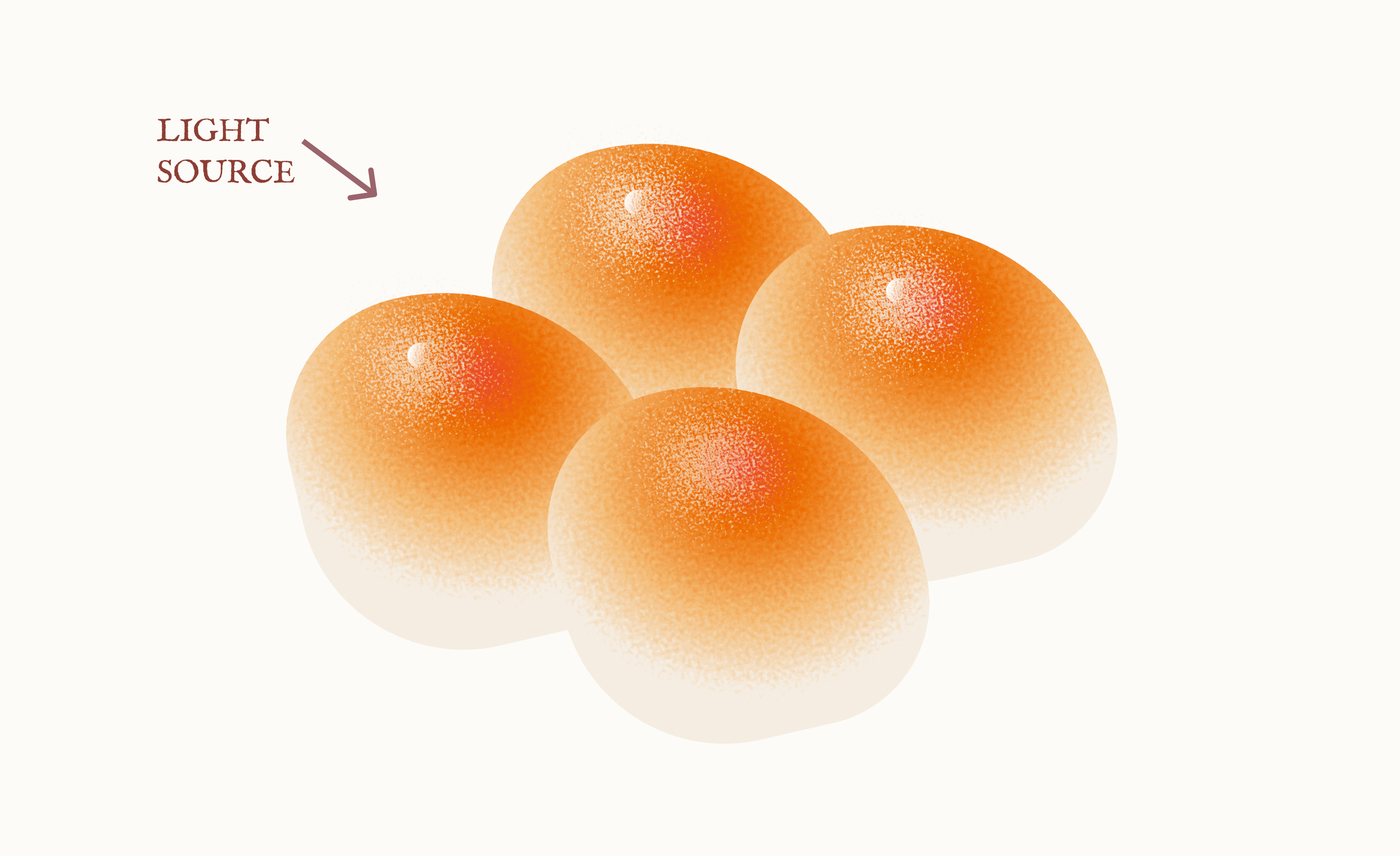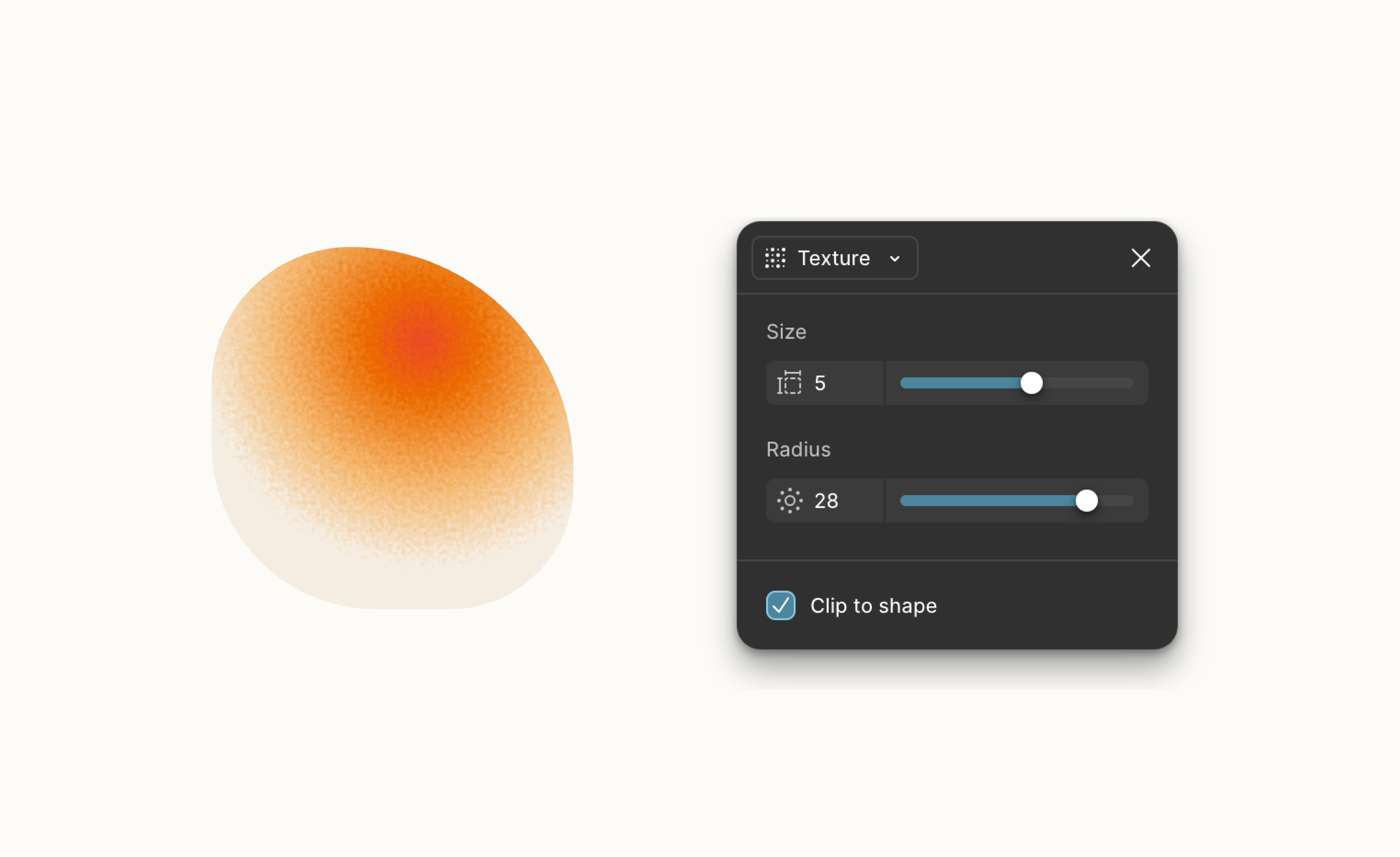 Add some highlights to the bread using simple shapes and a similar texture effect as step 4 above. If you donβt want the texture confined to a shape, uncheck Clip to shape. We are using the lightest color in our gradient (#F5EDE2) for the first highlight, and white (#FFFFFF) for the second.