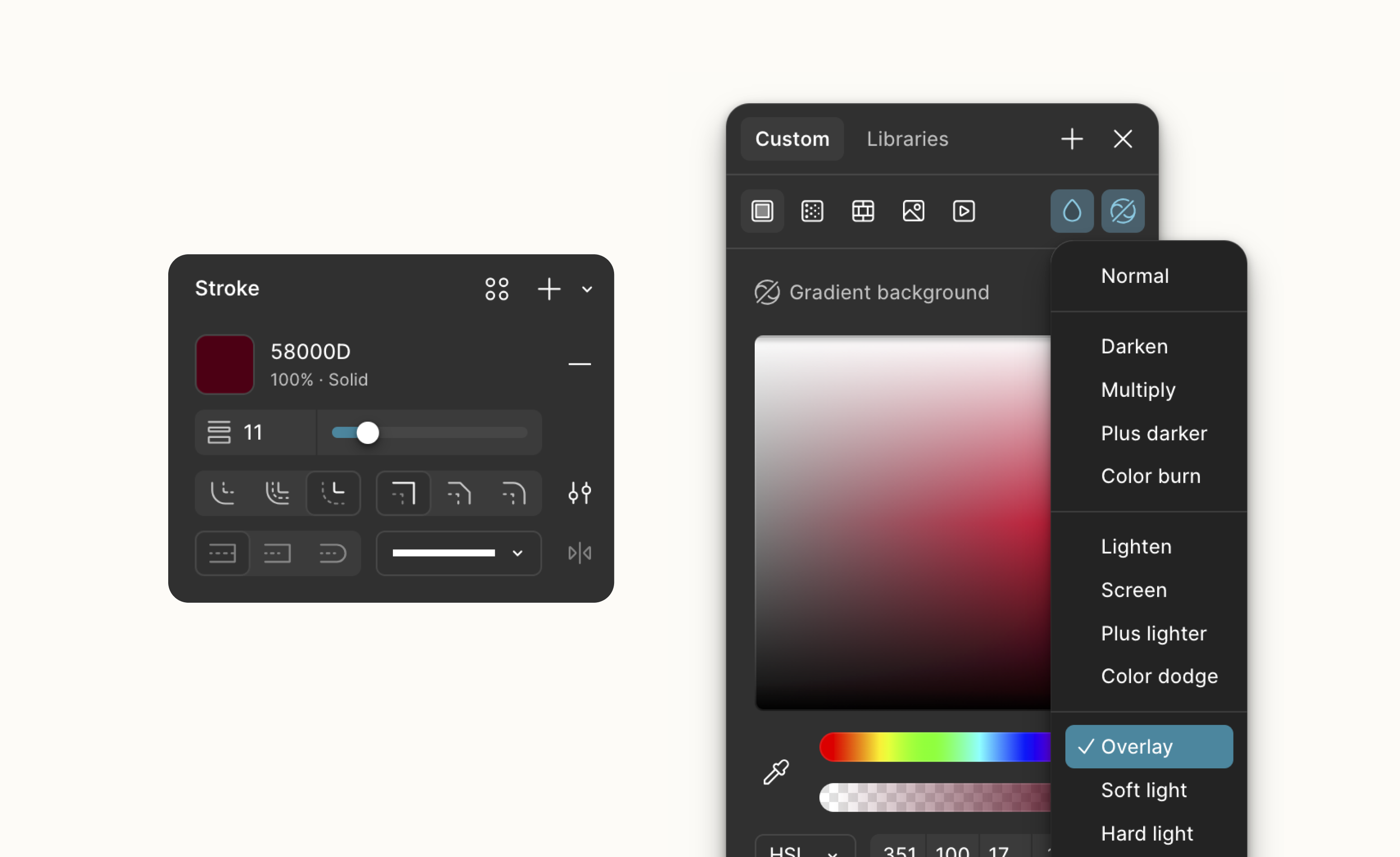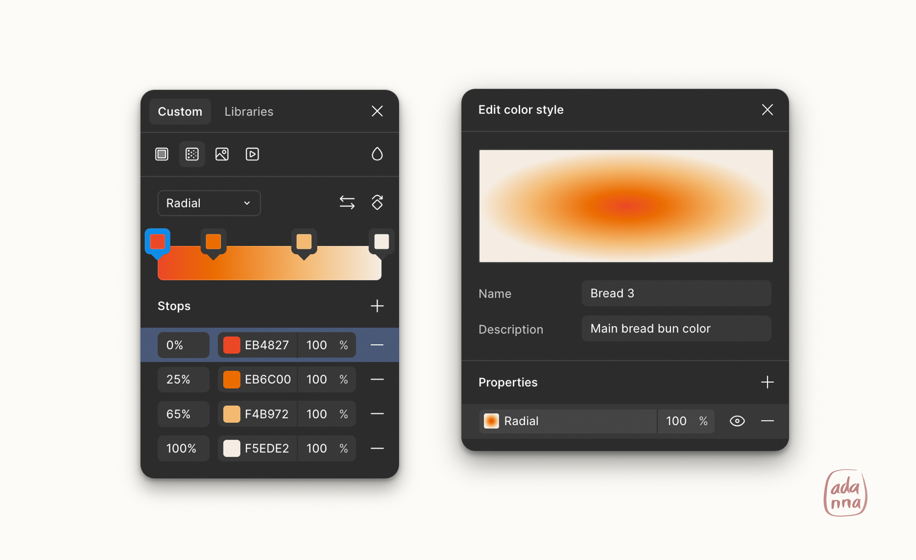 We will re-use this radial gradient for all our bread buns. You can set up color styles or variables for the individual colors if need be.